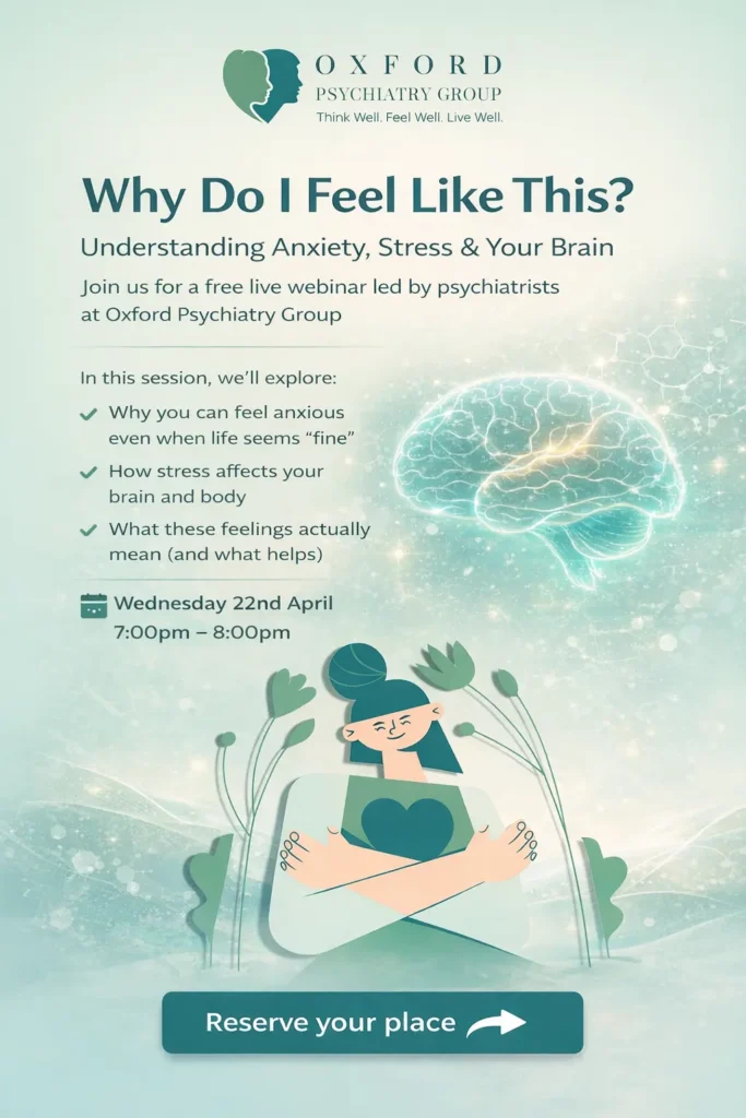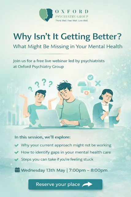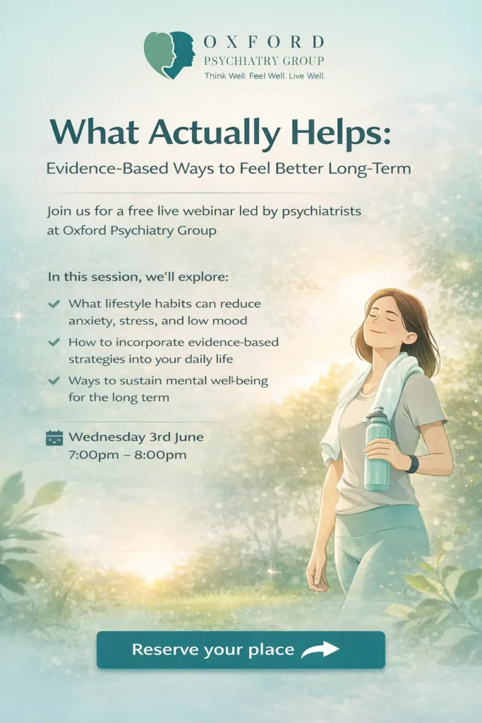 Join our free live webinar led by psychiatrists at Oxford Psychiatry Group to explore practical, evidence-based ways to support your mental wellbeing and build habits that help over time.